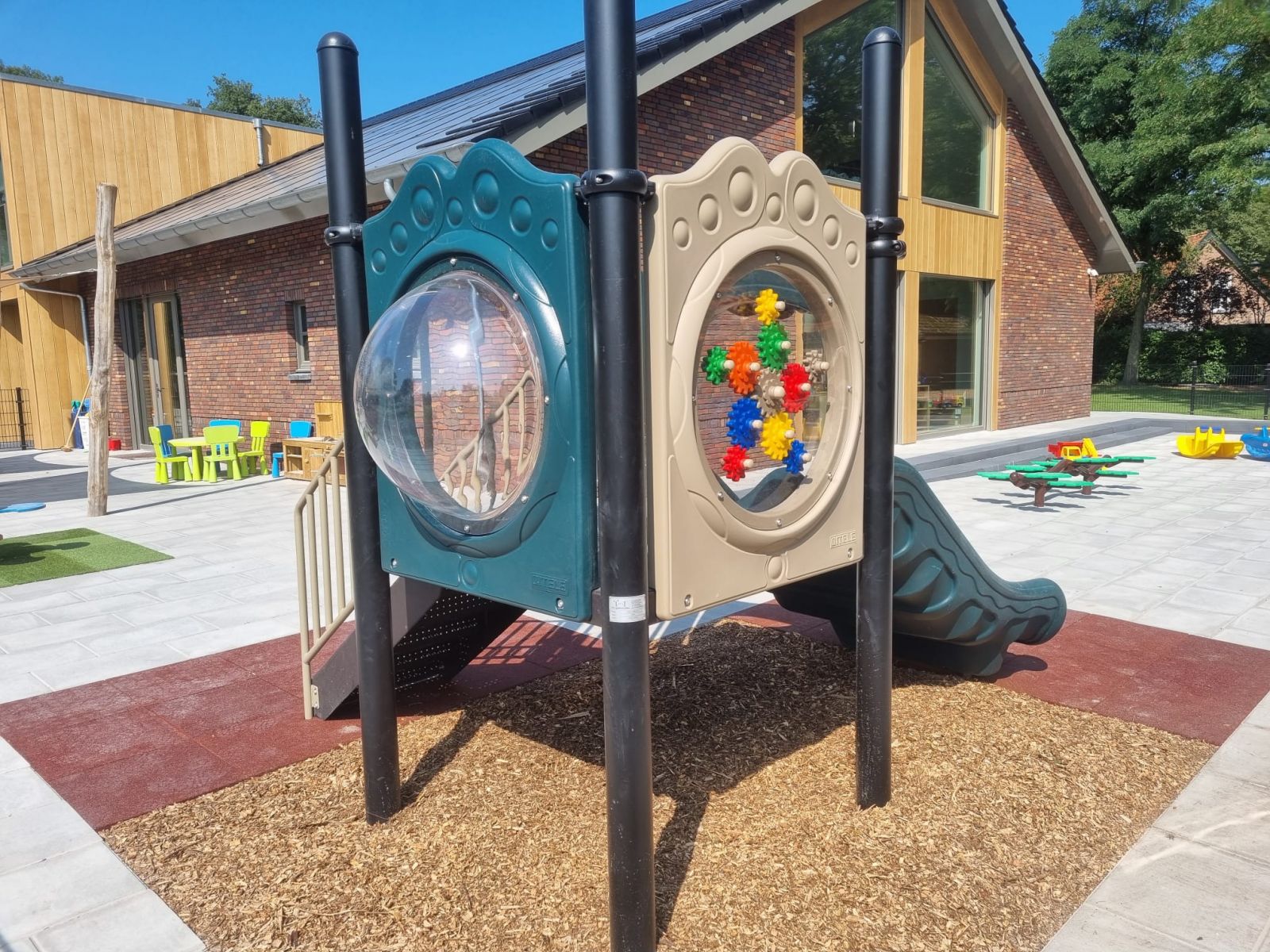 Dit speeltoestel met dubbele glijbaan neemt niet veel ruimte in beslag maar heeft toch verschillende speelfuncties. Een zeer geschikt speeltoestel voor de allerjongsten kinderen.