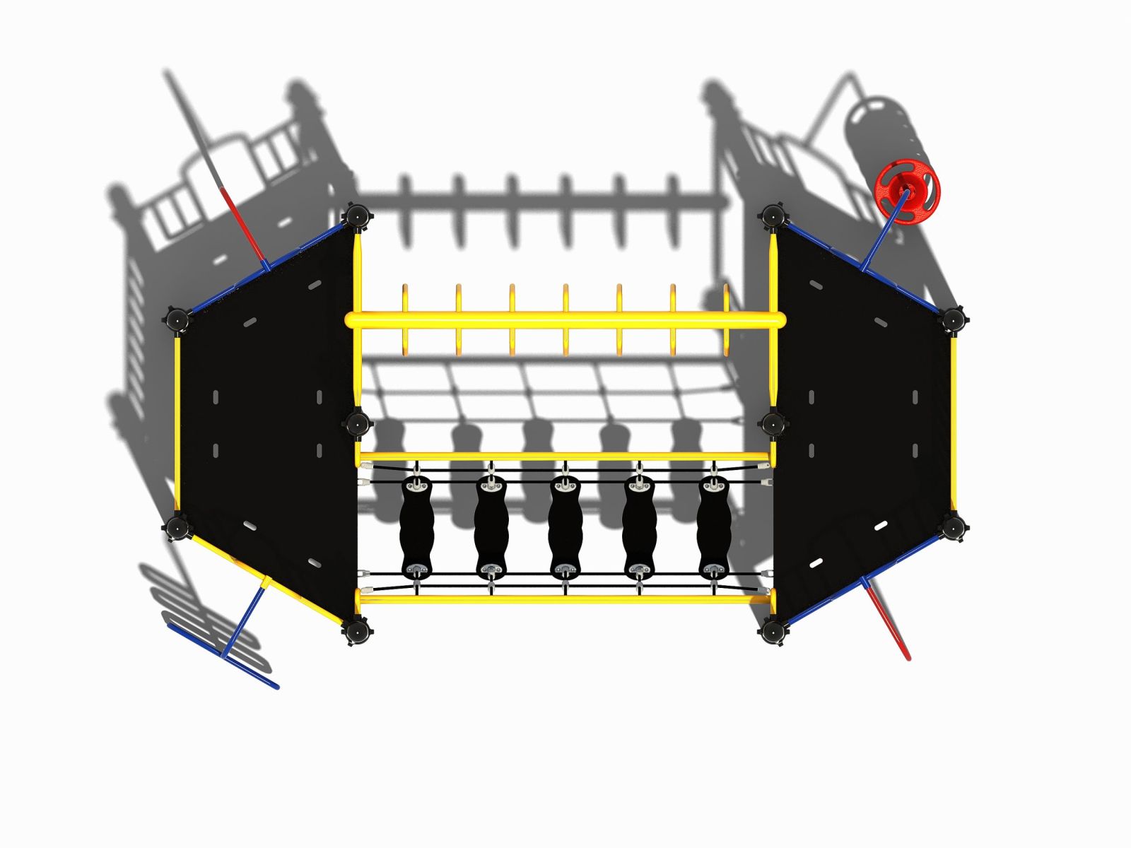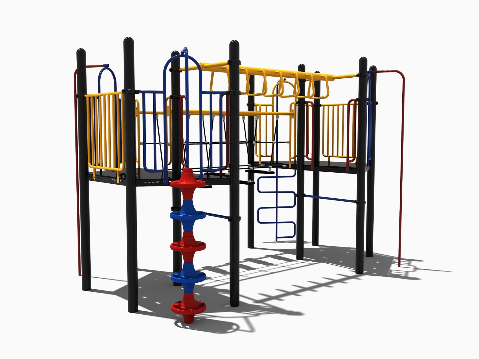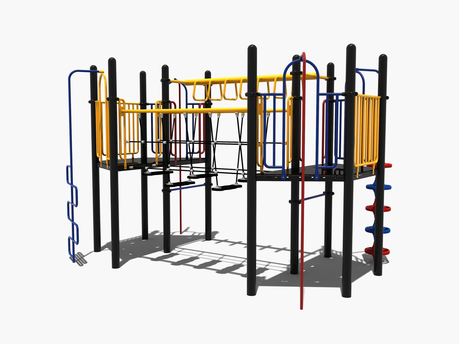 Speeltoestel met een wiebelbrug en een hangrek
