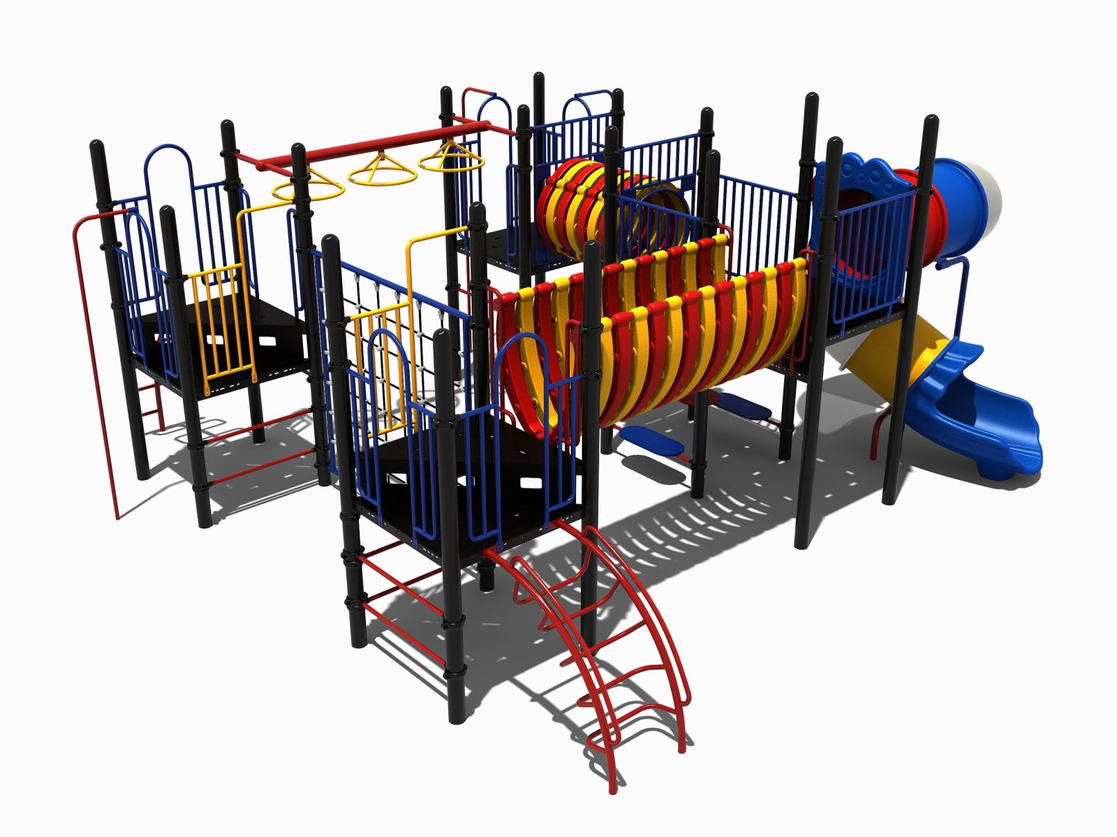 Het ontwerp voor dit speeltoestel uit de metaal- en kunststof serie is door de klant in het online tekenprogramma van TnT speeltoestellen gemaakt. In deze zogeheten TnT 3D-ontwerper begin je bij de basis van het speeltoestel, het platform, en deze vul je aan met een of meerdere platformen, de nodige verbindingselementen en opgangen om naar boven te klimmen. Je kunt van een heel eenvoudige glijbaan met een platform een heel groot speeltoestel maken door steeds weer nieuwe speelelementen toe te voegen. Ook de kleuren van je speeltoestel bepaal je zelf. Ervaar zelf de mogelijkheden van de TnT 3D-ontwerper en ontwerp een maatwerk speeltoestel.