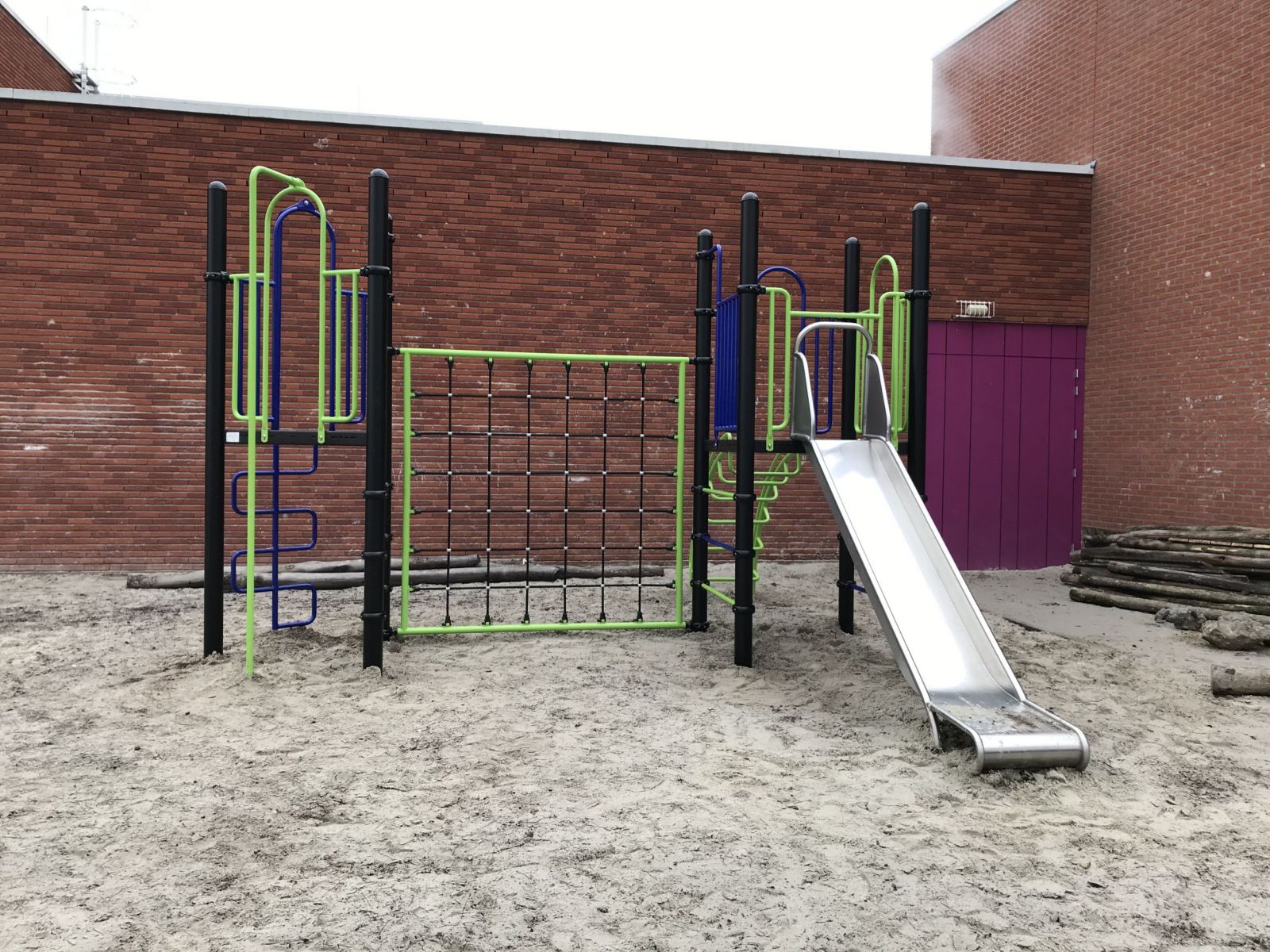 Speeltoestel met klimnet en rvs glijbaan