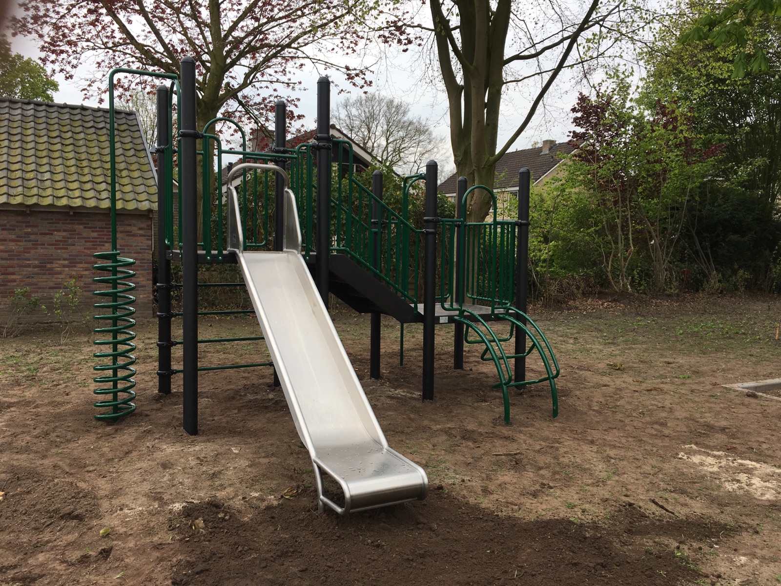 Metalen speeltoestellen met rvs glijbaan