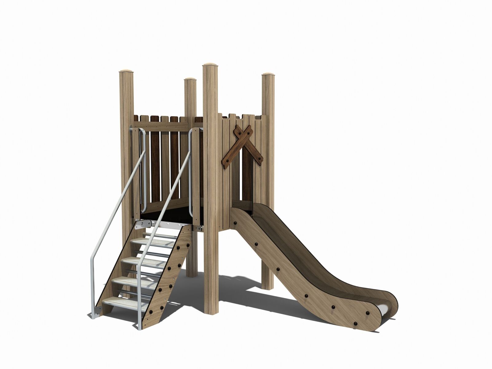 Natuurlijke speeltoestellen van TnT zijn speeltoestellen in de look & feel van hout maar gemaakt van aluminium, HPL en RVS. Ze combineren de uitstraling van hout met duurzame, onderhoudsarme materialen en zijn perfect voor een natuurlijke speeltuin.