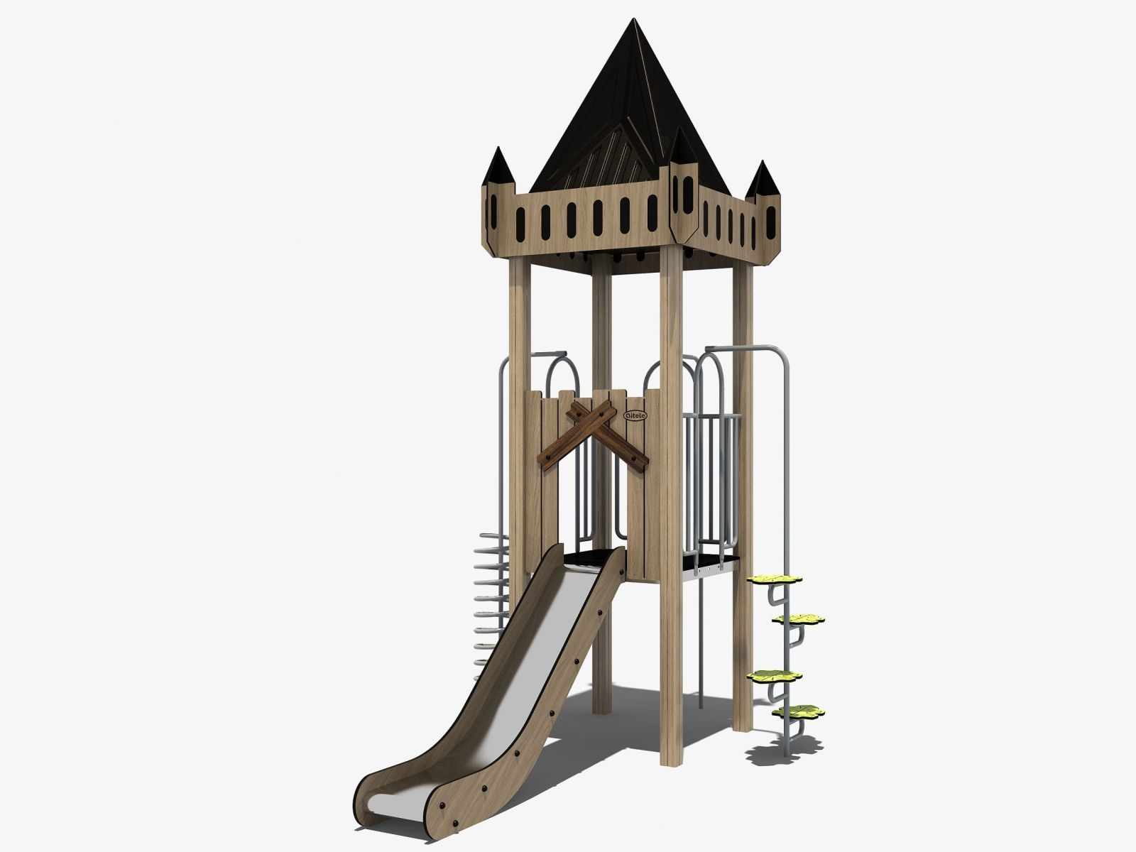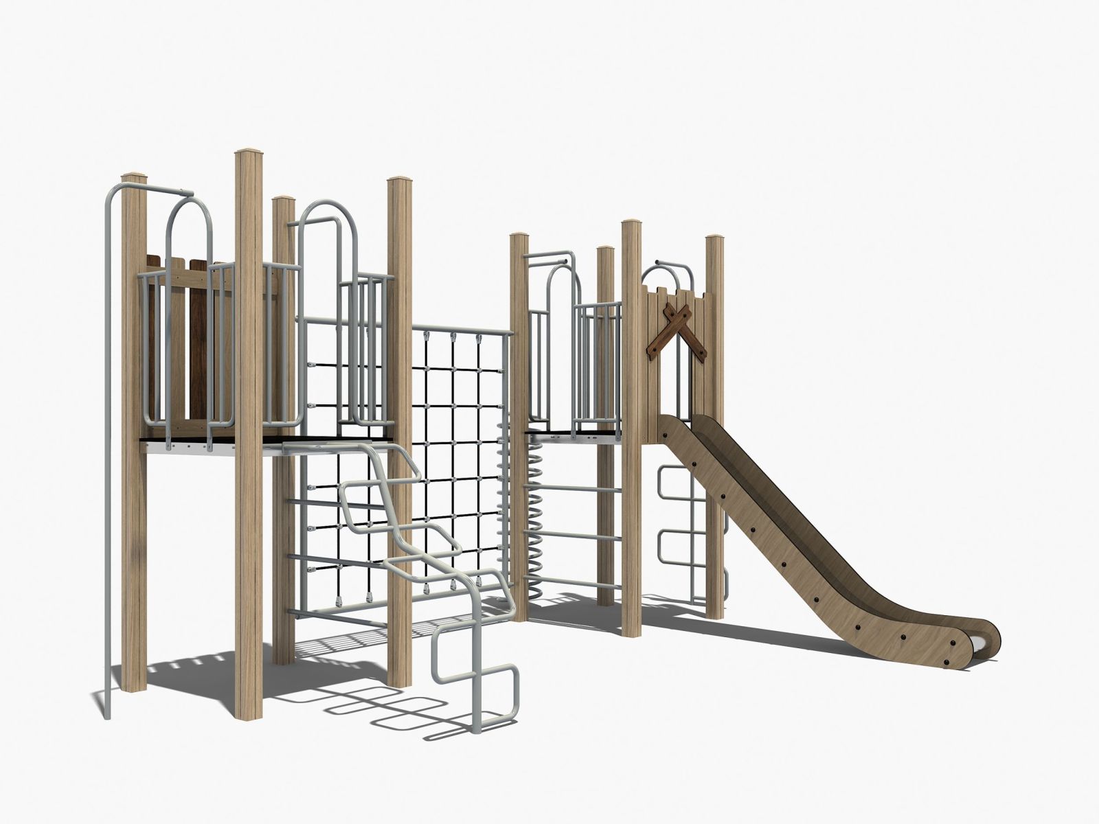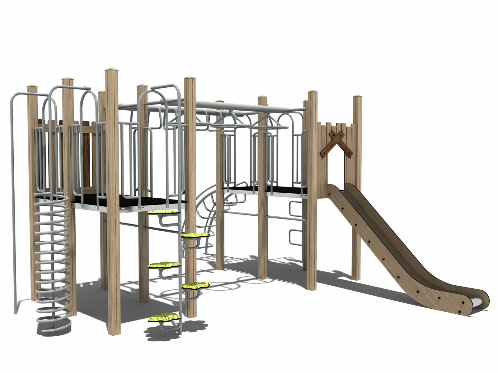 Dat hoeft niet. Hoewel veel mensen natuurlijke speeltoestellen associëren met (robinia) hout, kiest TnT bewust voor houtvrije materialen die een rustige uitstraling hebben maar duurzamer en onderhoudsarmer zijn.