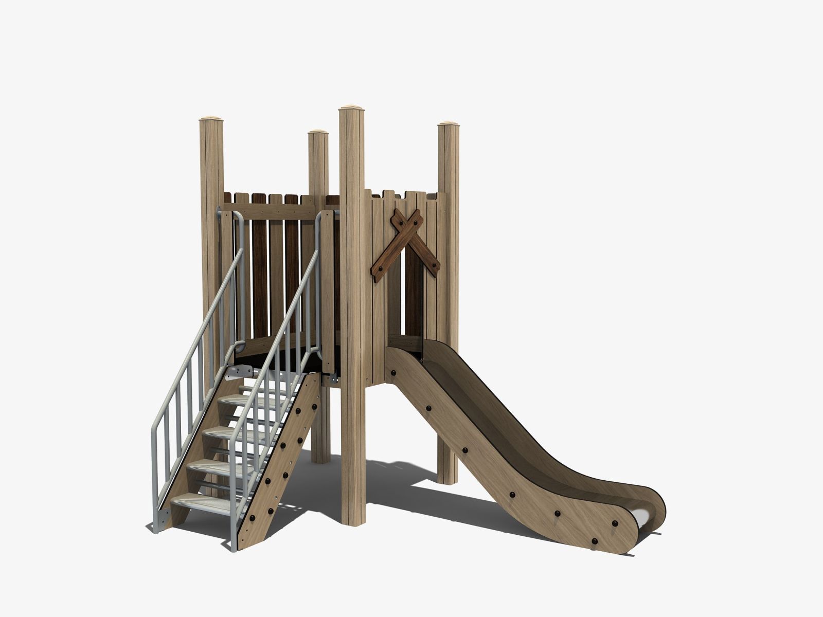 Natuurlijke speeltoestellen van TnT zijn speeltoestellen in de look & feel van hout maar gemaakt van aluminium, HPL en RVS. Ze combineren de uitstraling van hout met duurzame, onderhoudsarme materialen en zijn perfect voor een natuurlijke speeltuin.