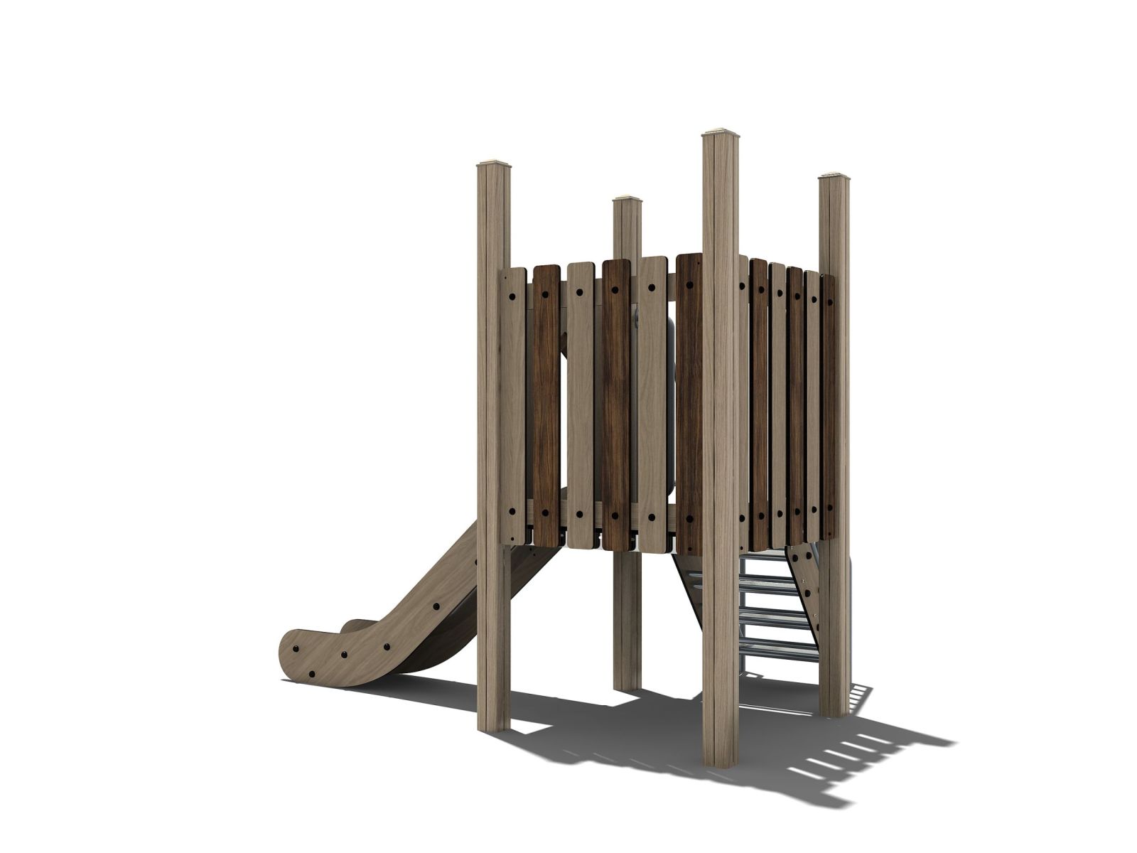 Deze glijbaan combineert de uitstraling van hout met het duurzame van metaal en kunststof. Alle onderdelen die niet van rvs zijn gemaakt, hebben de houtlook. Deze glijbaan heeft een robuuste trap naar boven met een rvs leuning waar je je goed aan vast kunt houden. Het lage platform van 90 cm is omringd door spijlwanden. De rvs glijbaan met opstaande rand zorgt voor een veilige gang naar beneden. Deze gecertificeerde glijbaan biedt ook de jongste kinderen de mogelijkheid met een veilig gevoel alleen naar boven te klimmen en naar beneden te glijden zonder begeleidende hulp.