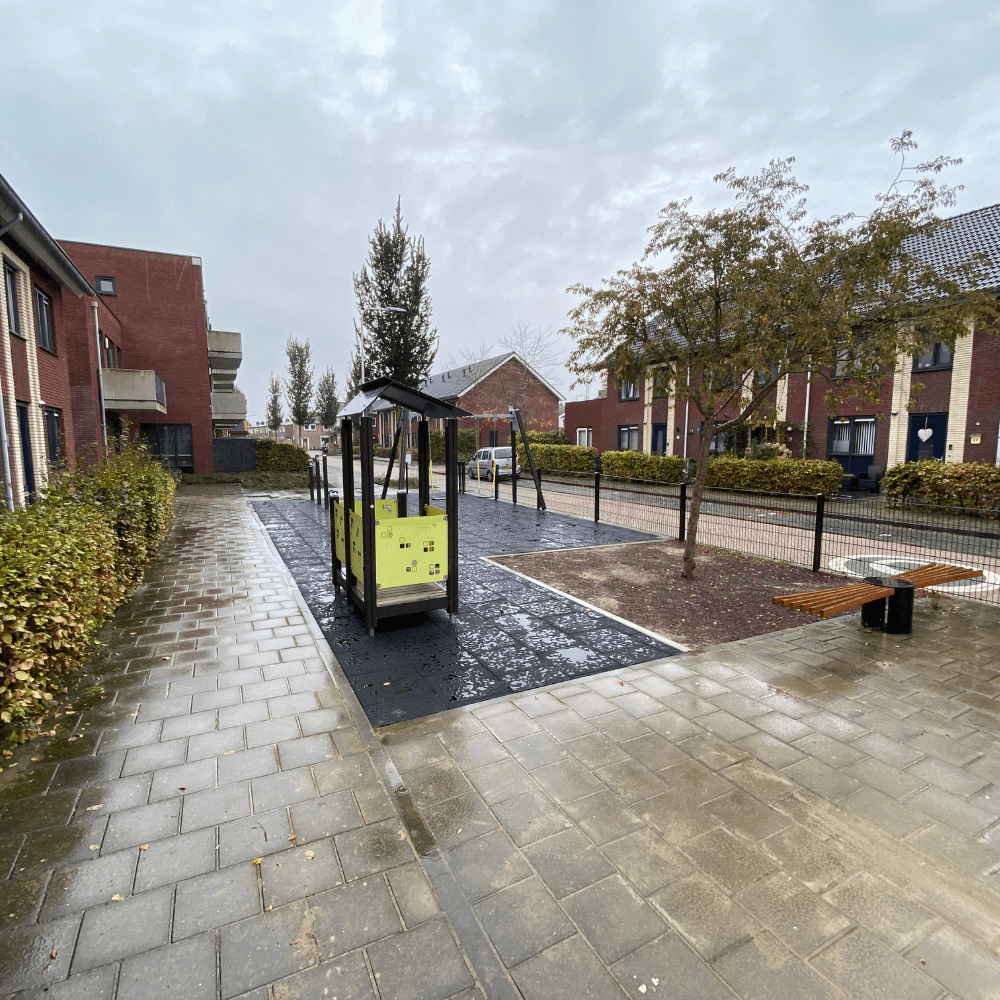 Een project van een heel andere aard. Ditmaal reisden we af naar de Van Kleefstraat in Huissen voor het leggen van een compleet nieuwe valondergrond onder bestaande speeltoestellen. En ook in de Gemeente Lingewaard komen we niet voor de eerste keer. Want eerder al hebben we in Haalderen een wijk opgefleurd met nieuwe kleurrijke speeltoestellen, waarvan er een zelf is ontworpen in onze TnT 3D-ontwerper.