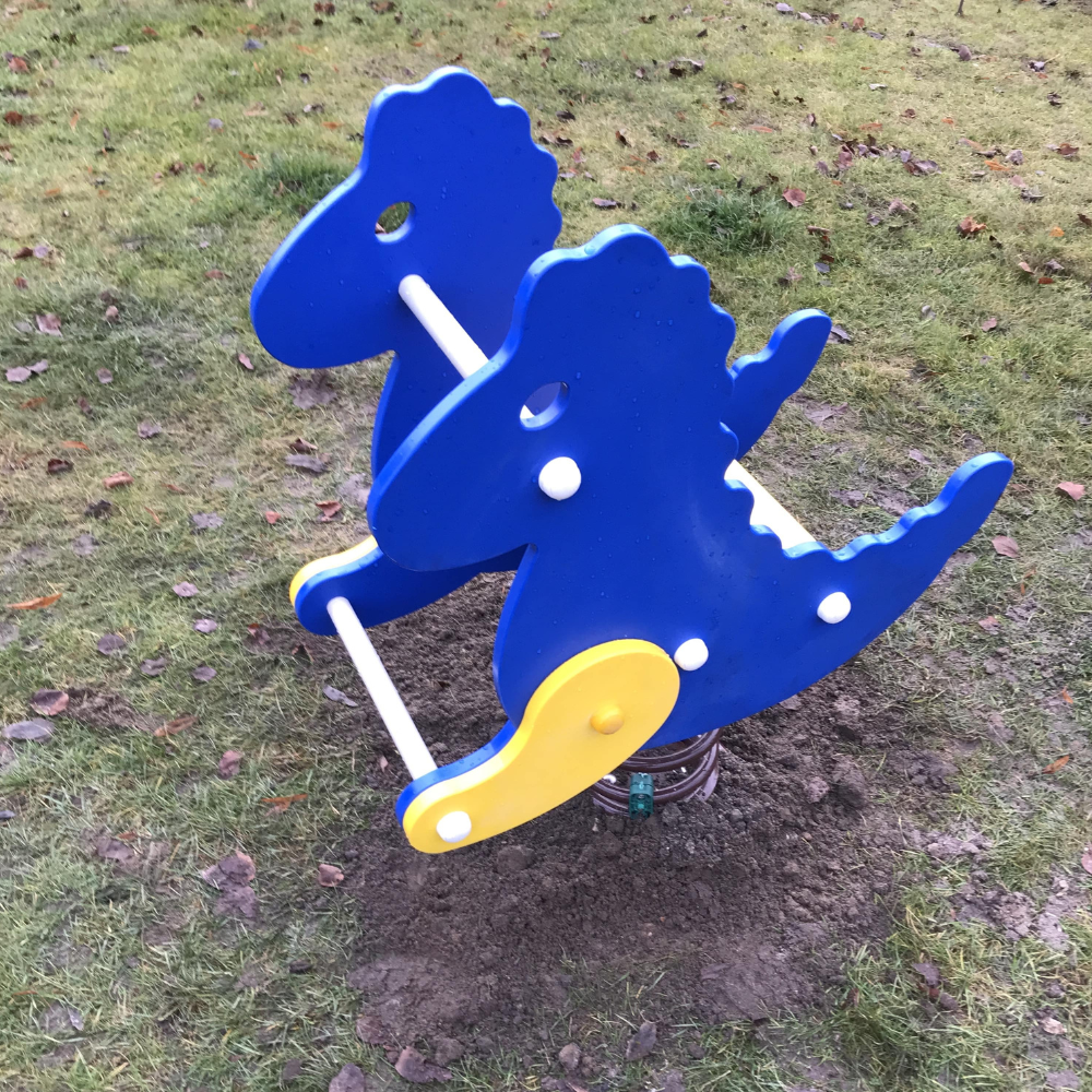 De naam klinkt een beetje eng maar dat is dit veertoestel allerminst. Sterker nog, deze is speciaal neergezet voor de kleine kinderen in de wijk. De wipkip T-Rex heeft de vorm van een dinosaurus. Door zijn hoge zijkanten voelen de kindjes zich lekker veilig in dit veerbeest om eens flink op en neer te wiebelen. De voetjes kunnen op de onderste stang en met de handjes houden ze zich vast aan de bovenste. Hartstikke leuk toch?