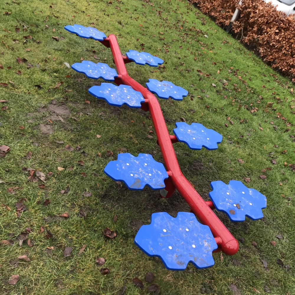 In deze kleuren (rood met blauw) hebben we dit balanceertoestel nog niet eerder uitgevoerd. Maar zo zie je maar weer dat alles mogelijk is bij TnT Speeltoestellen. Deze balanceerbalk met bladeren is een zeer populair speeltoestel voor allerlei speelplekken in de openbare ruimte. Niet alleen voor de gemeente maar ook op schoolpleinen en bij kinderdagverblijven is dit balanceertoestel een favoriet item. De balanceerbalk blijft laag bij de grond, de bladeren zijn groot genoeg om veilig op te staan dus ook jonge kinderen durven de uitdaging om van de ene naar de andere kant te stappen al snel aan. Wist je trouwens dat we ook twee nieuwe uitvoeringen van deze balanceerbalk hebben. De ene heeft een hoogteverschil en de andere is halfrond van vorm.