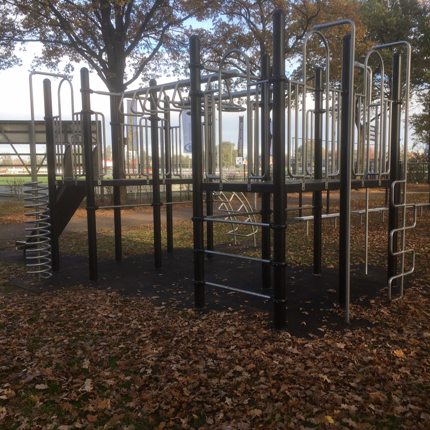 Het geplaatste callisthenics sporttoestel is ook van metaal en is geschikt voor verschillende krachttrainingsoefeningen voor de arm- been- en buikspieren. Verder is een brug met gelijke leggers neergezet voor oefening van armspieren en behendigheid.