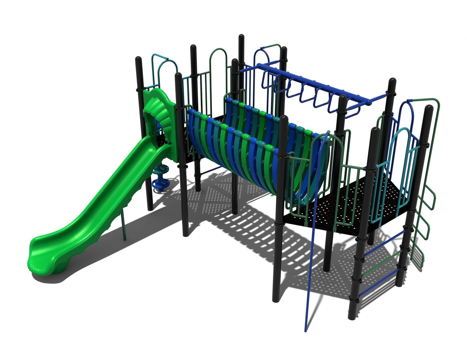 Het ontworpen speeltoestel van Hanse Panse Kevertje bestaat uit twee grote platformen die met elkaar verbonden worden door twee speelelementen: de halfopen kruiptunnel en de ringladder. Aan beide platformen zijn aan de uiteinden spijlen tussen de staanders gemaakt die als klimladder dienen. Verder vind je aan beide vloeren een glijstang. De vloeren zijn verder aangevuld met een slangentrap, de opgang met de kunststof doppen en een mooie grote kunststof glijbaan. Op deze manier zijn alle zijden van de platformen goed benut.