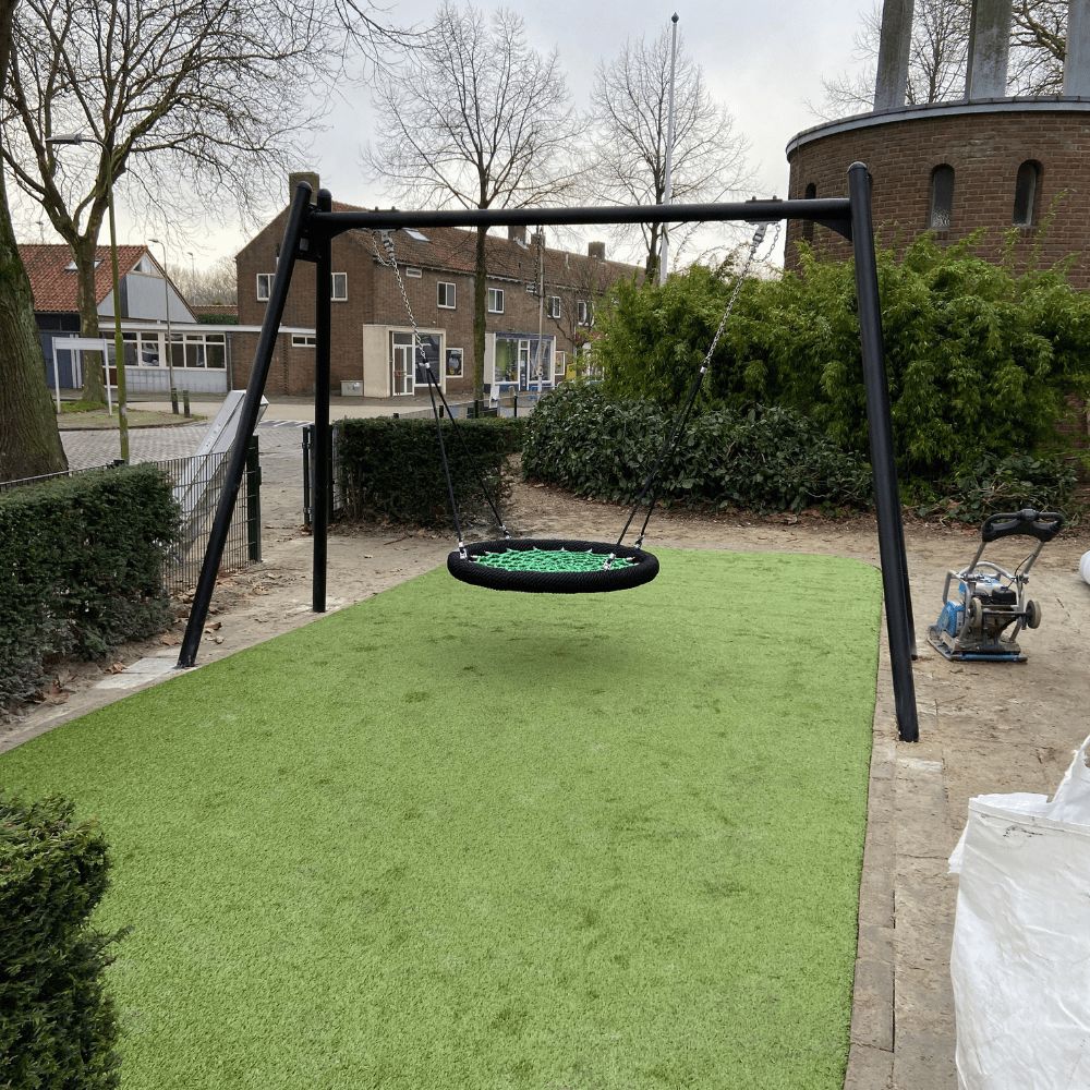 In samenwerking met onze partner Luduq hebben we een aantal nieuwe speeltoestellen voor de kinderen mogen plaatsen. In Espel is een nieuw driedelig duikelrek neergezet en op de locatie in Creil zijn een vogelnestschommel, een driedelig duikelrek en een zelf getekend speeltoestel neergezet. Het grond- en straatwerk heeft de kinderopvang in eigen beheer uitgevoerd. Als ondergrond is gekozen voor kunstgras dat in mooie organische vormen onder de speeltoestellen is gelegd.