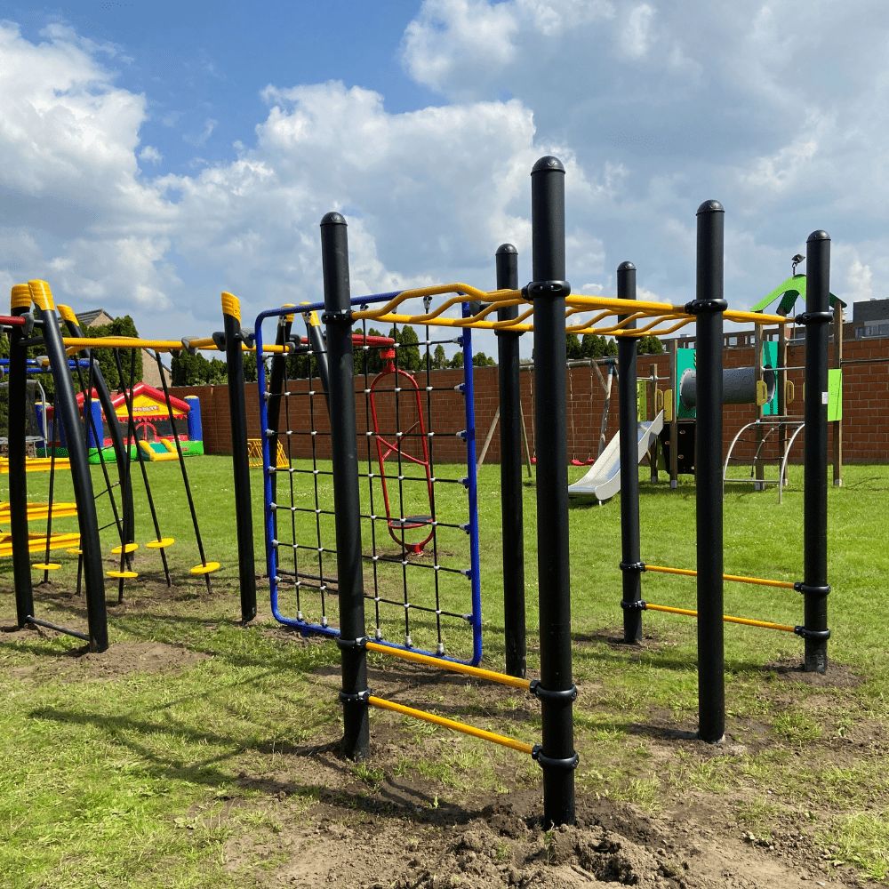 Aan de monkey bar is een klimnet gemaakt. Dit klimnet wordt ook in de calisthenics gebruikt en is een frame waarbinnen horizontaal en verticaal versterkt staaldraad is gespannen in een ruitpatroon. Je kunt hier naar boven klimmen en aan de andere kant weer afdalen maar uiteraard ook je andere klimkunsten vertonen.