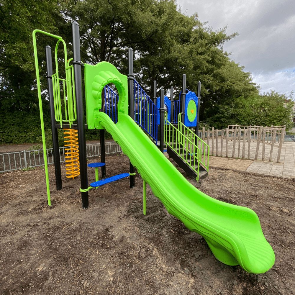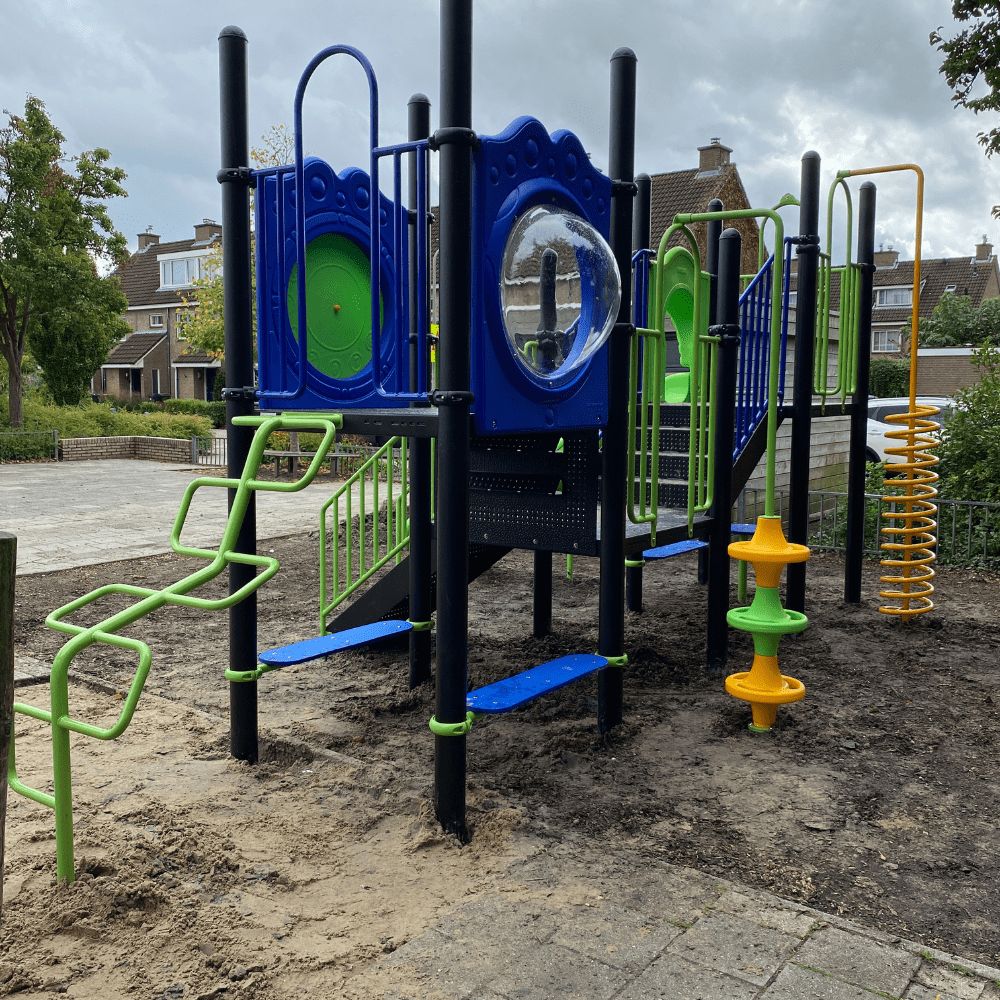 OBS De Achtbaan is een Daltonschool met drie vestigingen in Voorhout. Op de vestiging aan de Distelweg hebben wij een fleurig speeltoestel op het schoolplein mogen plaatsen in een opvallende kleurstelling. En wat een feest was het toen het speeltoestel eindelijk in gebruik genomen mocht worden door de leerlingen van de school.