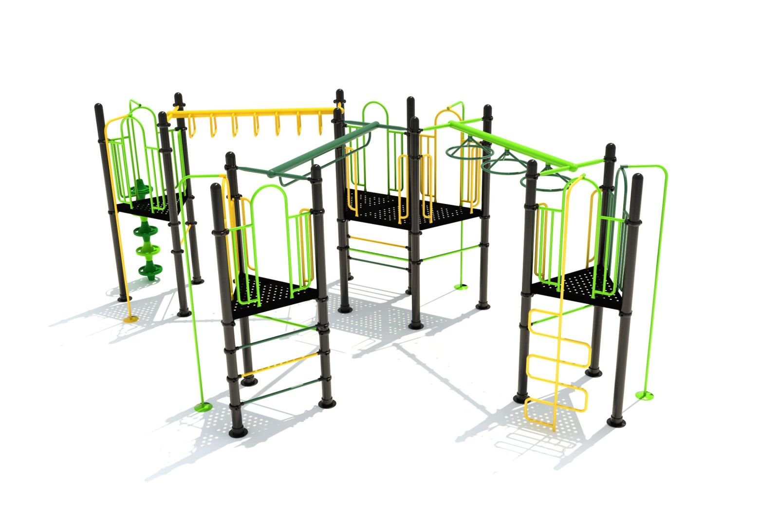 Op het nieuwe speeltoestel kun je volop klimmen, hangen en glijden. Het bestaat uit vier platformen waaraan verschillende speelelementen zijn bevestigd. Alle platformen zijn met elkaar verbonden door hangelementen. Via een ringladder, wielladder of hangrail ga je van het ene naar het andere platform. Dit zijn elementen die ook in de calisthenics gebruikt worden om je behendigheid en spierkracht in armen en schouders te verbeteren. Daarnaast klim je naar de platformen met onder andere de liggers tussen twee staanders, de slangentrap en de opgang met de doppen. Aan ieder platform vind je verder glijstangen die je binnen no-time weer met beide voeten op de grond zet
