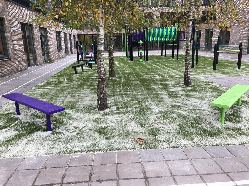 Wat hebben we mooie speeltoestellen mogen leveren voor het schoolplein bij het gloednieuwe schoolgebouw van de Lukasschool aan de Osdorper Ban in Amsterdam Nieuw-West. Dit in opdracht van onze partner Luduq, aangevuld met een strakke ondergrond van kunstgras door Variograss.