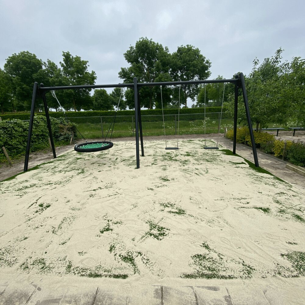 En uiteraard heeft de school ook aan schommelen gedacht. Deze dubbele schommel met aan de ene zijde een vogelnest en aan de andere zijde twee standaardzitjes zal menig maal gebruikt worden, is het niet voor het schommelen dan wel voor het chillen in de vogelnest.