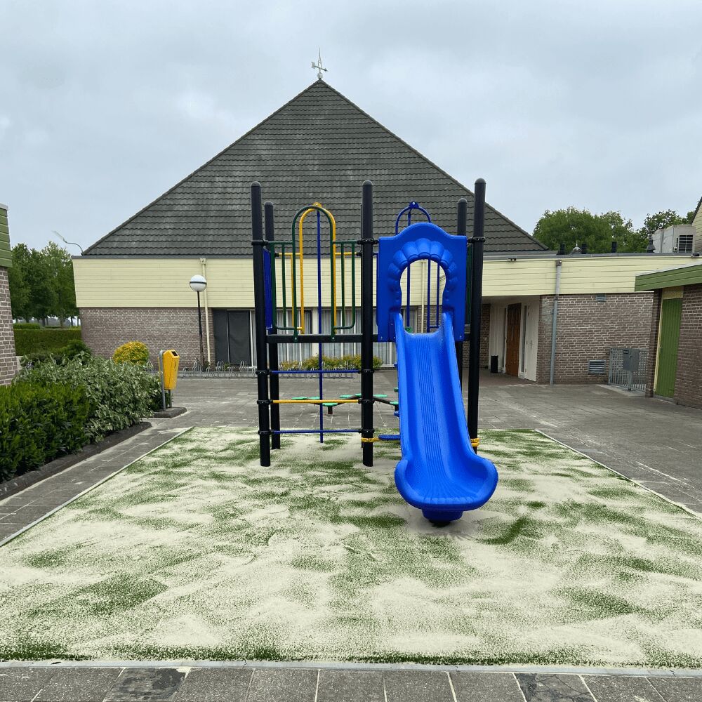 Het schoolplein van de Johannes Bogermanschool in Vriezenveen heeft een ware transformatie ondergaan. En wat een fantastisch nieuwe speelplek hebben we in samenwerking met onze partner Luduq mogen maken. Er zijn kleurrijke speeltoestellen neergezet met een strakke ondergrond van kunstgras, aangevuld met talrijke zitplekken in de vorm van metalen zitbankjes. Een waardevolle investering die veel speelplezier voor de leerlingen van deze school gaat opleveren.